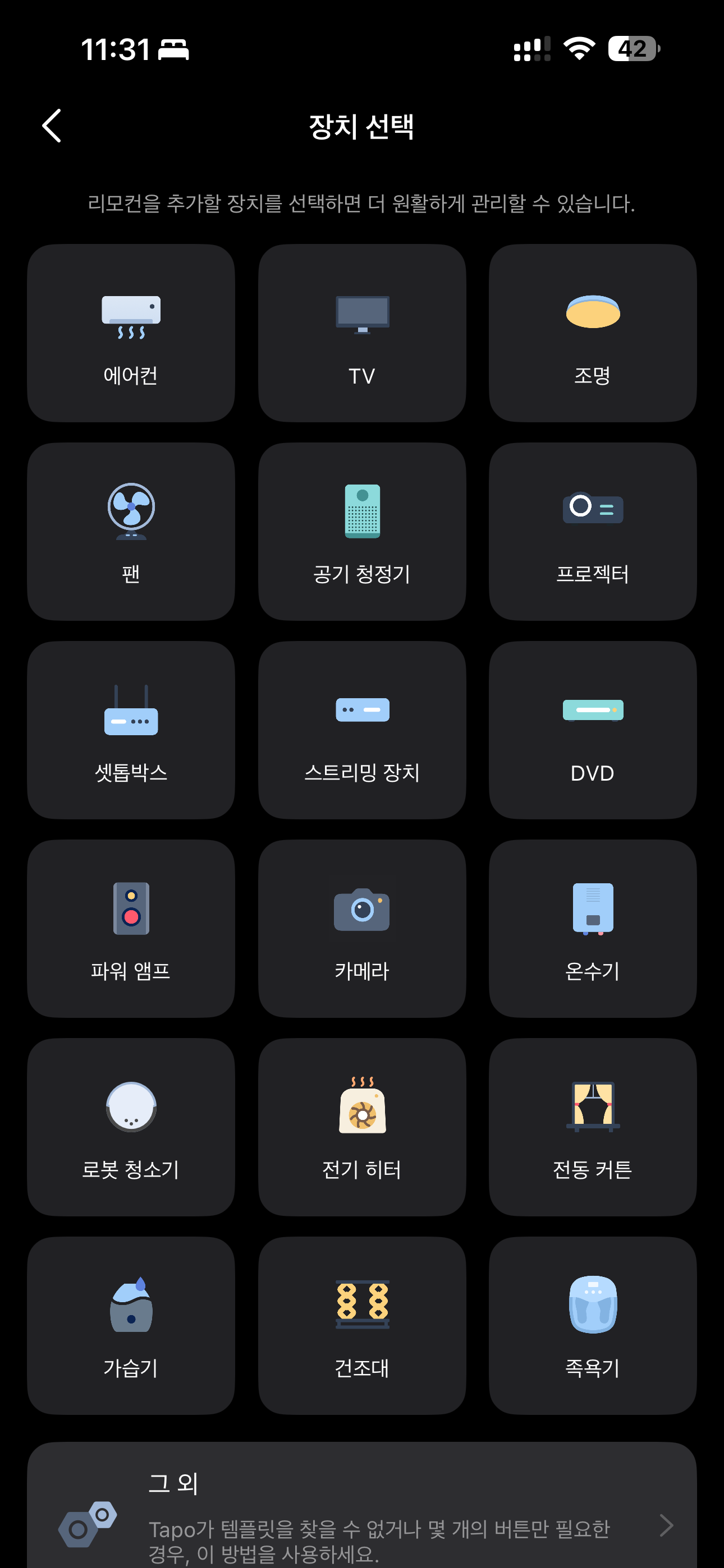 21개의 리모컨 형태를 제시해주는데 운좋게도 첫번째로 바로 응답을 해서 바로 등록 했습니다.